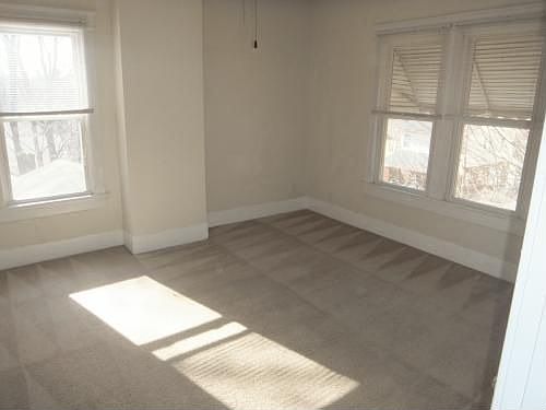 This apt is on the second and third floors. The first floor of the apt has: living room, dining room, 2 bedrooms, bath, kitchen with frost-free refrigerator, self-cleaning oven, over-the-oven microwave. The top floor has a large bedroom, bath and bonus space. Small deck off top floor. Laundry hook-ups and storage are in basement. Off-street parking.