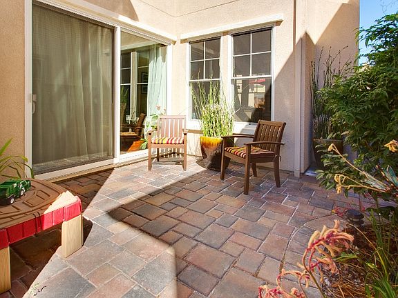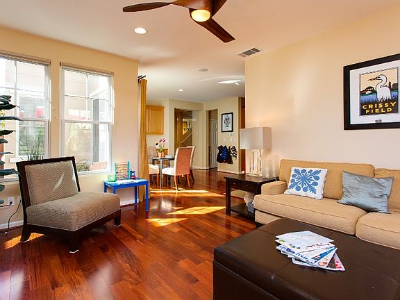 Elegant 8 year home with many upgrades! Wood floors, mosaic tiles, ceasar stone counters, stainless steel appliances. 9' ceilings. Great morning sun in the family room and nook. Possible bedroom and full bath on ground level. Sunny court yard and back yard. Balcony off bedroom. Close to ferry.
