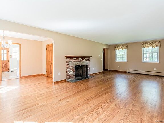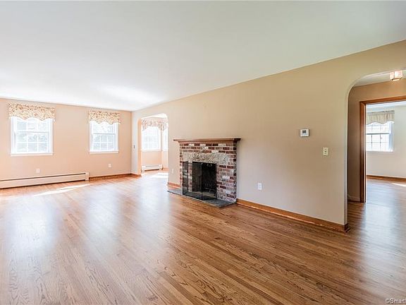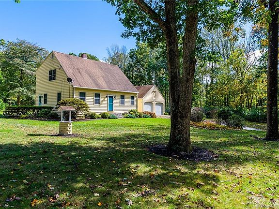 This sunny yellow Cape sits on 2.3 acre park-like grounds. The many outdoor spaces provide a break from the hustle-bustle and a chance to relax and enjoy the beautifully landscaped yard. A side patio is accessed by a Dutch door, where you can enjoy your evening meal or a cup of morning coffee. The large living room has a wood burning fireplace for cool nights and the entire first floor offers central A/C for hot summer nights! All hardwood floors have been refinished and looking like new! The kitchen and baths have ceramic tile flooring. All windows have been replaced and let it beautiful natural light. There are many storage options: walk-in attic, full basement and detached 2 car garage. A little updating will turn this into your forever home.