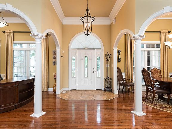 Stunning 5 bedroom ranch on a finished, walkout basement. All the features you've been looking for: grand foyer, crown molding, 10 ft ceilings, gleaming hardwood floors, & a beautiful fireplace. Separate formal living & dining areas greet you off the foyer. Great room has ample space for relaxing & opens to the kitchen. Kitchen is tiled w/ stainless steel appliances, tons of counter & cabinet space, & a breakfast area. Master suite is large with a tray ceiling & private, ensuite bathroom featuring a separate tub & large, walk-in tiled shower. Two additional 1st floor bedrooms are generously-sized. Fully finished basement will make all your entertainment dreams come true: wet bar, spacious family room/den, rec room large enough for a pool table, & a home theatre room. Basement has 2 additional bedrooms & a full bathroom - perfect for guests. Check out the nearly half acre yard from the deck (more photos coming)! Part of the yard is fully-fenced with a storage shed. Don't miss this home!
