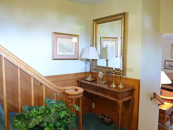Custom built estate home with built in book shelves and storage throughout house. Gorgeous hardwood floors up and down. Main level foyer leads to lovely wood stairway. Main level features open great room with kitchen, breakfast and family rooms. Large living room has wood burning fireplace. Dining room has pass through from kitchen and bay window. 4 huge bedrooms upstairs all have hardwood floors and lots of closets. Master bedroom has additional cedar closet. Baths are in pristine but original condition. Flagstone patio is off main level--overlooks large private backyard. All appliances transfer including water softener system. Newer AC and high efficiency furnace. Basement has a finished family room with fireplace. Move in now!