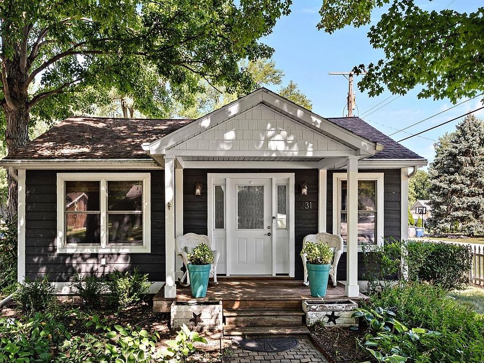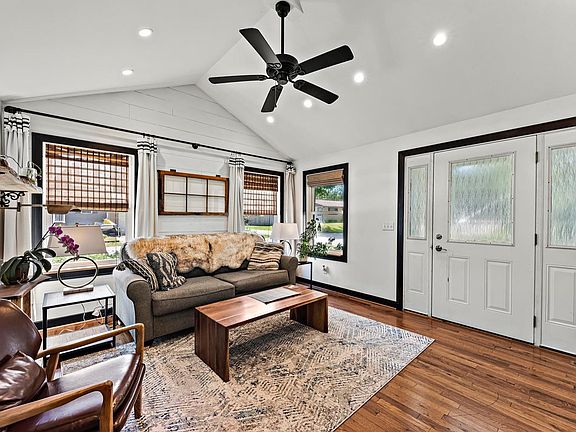 On a quiet corner in Trail Creek this two bedroom one bath starter home boasts front and rear RING door bells, a covered front porch and rear grilling deck. Flowers, a decorative fence and beautiful maple tree set the scene for natural abundance.See for yourself, great windows, vaulted ceilings with can lights, French door, wood and tile floors, newer appliances, open concept kitchen and dining. Garage is for storage with off street parking for two cars. Catch the blossoms before the leaves change. Value with character!