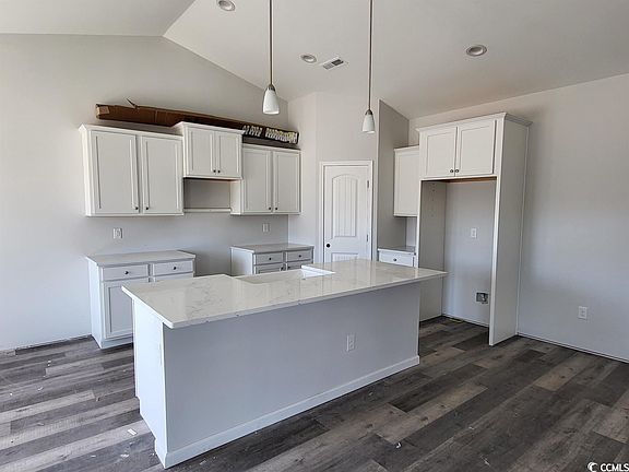 Golf cart to the beach from this beautiful Seascape floor plan under construction by the local builder voted Best of the Grand Strand for the second consecutive year! In the Ocean Palms community (Voted Best Neighborhood!), and scheduled to be complete in mid May. This terrific 3 bedroom, 2 full bath, open floor plan home has upgraded wood-look LVP flooring throughout the entire home - no carpet! Stainless appliances, staggered-height Shaker-style white cabinetry, marble-look quartz counters with a white subway tile backsplash, a white cast iron farm sink, a corner pantry, pendant lights and a convenient work island/breakfast bar combine to give the kitchen the wow factor you're looking for, and the bay window in the dining area floods the room with light. Sliders at the back wall of the family room lead to a covered porch and a concrete patio, with a backyard large enough to install a pool, if you wish. The spacious owner's retreat features a tray ceiling, oversized walk-in shower, long quartz vanity with double sinks, plenty of storage in the cabinetry and linen closet, plus a huge walk-in closet. Two additional bedrooms and a bath with quartz counters are tucked off on their own private hallway, for privacy. All of the homes in Ocean Palms come standard with the luxury of natural gas (tankless water heater, gas heat, and gas range). The garage is completely trimmed and painted, with floored attic space accessed by drop-down stairs. Ocean Palms is conveniently located near shopping, restaurants, schools and world class medical offices and hospitals, and is only a short golf cart ride to Surfside Beach's gorgeous beach and the Atlantic Ocean. Other floor plans and inventory homes may be available. Community pool and cabana!
