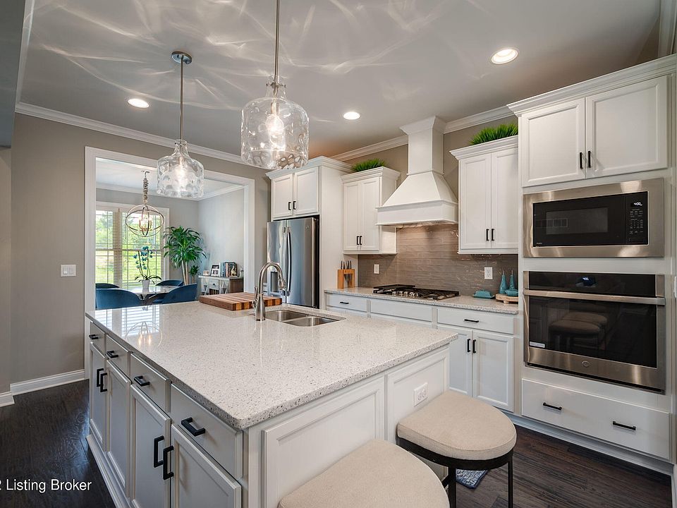 WOW..NEW PRICE! HELLO GORGEOUS! This stunning ranch in The Park at Locust Creek offers maintenance free yards! Come home to easy living! Neighborhood provides a nature trail to Locust Creek Clubhouse, swimming pool and tennis courts. Located on the end of a cul-de-sac with a walkout basement, covered rear deck and large fenced in yard. All brick exterior with stone arched entry way and spacious foyer. MUST SEE formal dining room boasts tapered columns, trey ceilings and impressive lighting opens to the great room with a gas fireplace. An IMPRESSIVE quartz island is perfect for entertaining, embraced by a designer pendant lighting. White variable height cabinetry offers soft close drawers, gas Monogram cook-top with hood, custom back splash and spacious pantry. Pretty light-filled breakfast room, with double doors opening to the covered patio. The primary suite has trey ceilings and chandelier. Primary bath retreat includes chic custom tiled shower with frame less glass, dual sinks, jet tub, private water closet, and walk in closet. Two additional bedrooms, a full bathroom, and powder room complete the first floor. Light-filled lower level walkout allows for endless options. As if that was not enough, this home includes many luxury features such as hardwood flooring, designer lighting and custom trim work throughout.