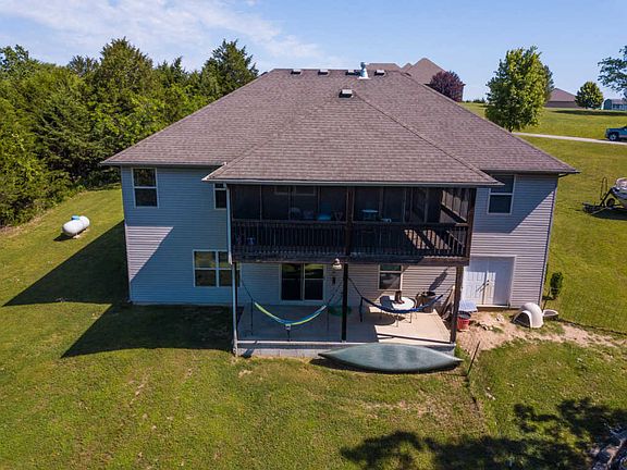 Beautiful home located just outside of the city limits in a quiet country setting. This home sits on 4.26 acres with Taneycomo right behind property. The home has 4 bedrooms & 3 baths and a large screened-in porch with a magnificent view. The living room, dining, and kitchen all boast 14 foot ceilings. The basement has abundant storage, large finished family room, built in surround sound, John Deere Room, 4th bedroom and safe room. Soundproofing has been put in the ceiling downstairs to keep the noise where it belongs. Come see this awesome family home today.