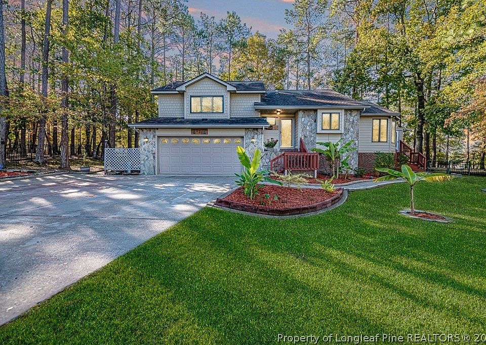 Seller reviewing offers. Highest and Best was due 12 noon, 10/19/22. WOW FACTOR! WATER VIEWS FROM FRONT AND BACK! This one of a kind home is located in Carolina Lakes on a cul-de-sac with only 2 other homes. Sapphire Lake right out your front yard where you can fish and kayak AND enjoy the view out your kitchen window. Ski Lake is in your backyard (water view only) with beautiful fully fenced wooded backyard. GORGEOUS REMODEL!! New LVP floors, high-end kit. appliances, beautiful granite counters and updated white kitchen cabinets. NEW 14-seer TRANE dual fuel heat pump, new TRANE mini-split installed in the finished enclosed porch (not permitted and NOT included in the sq. ftg). ENCLOSED HEATED/COOLED PORCH/SUNROOM IS 398 SQ FT., new interior doors, fresh paint throughout. Beautiful stacked stone wood burning FP. View of both lakes from your dining room with windows all around! 2 car attached garage w/ workshop area. Huge shed in backyard.