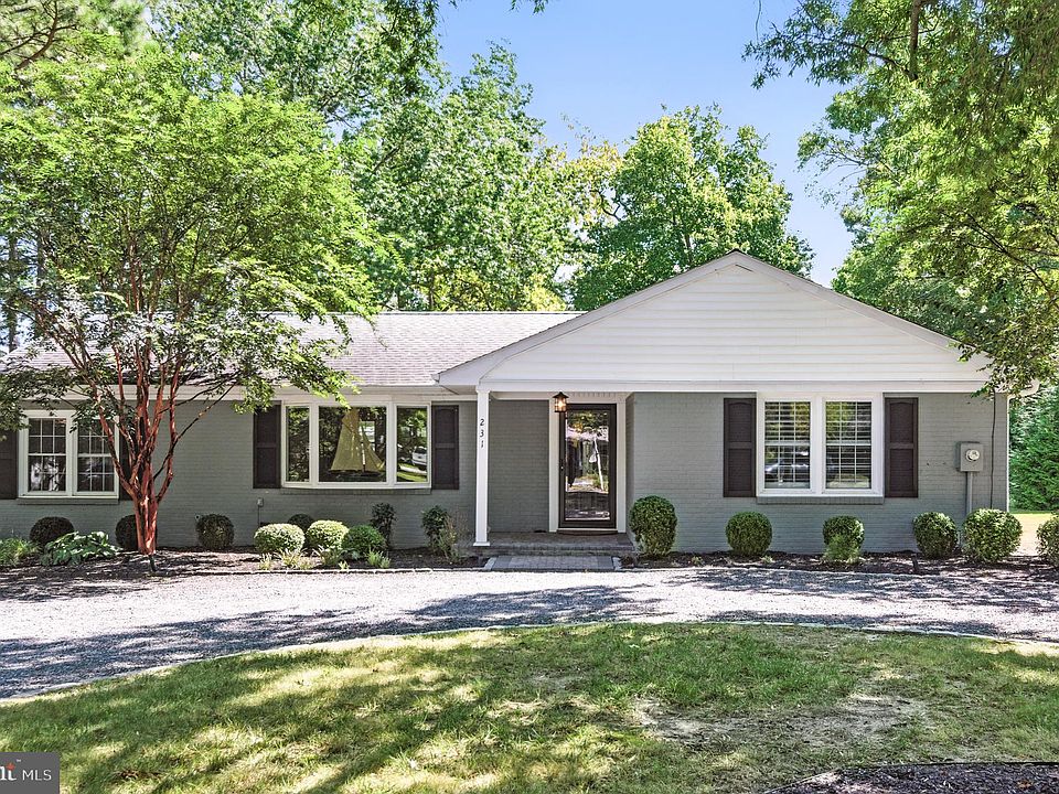 Welcome to 231 Madison Avenue, a beautifully renovated one-level home located in the water access community of Rio Vista, just minutes from downtown historic St. Michaels. Offering 2 bedrooms and 2 full baths, this home has been thoughtfully updated throughout, combining modern design with classic design in this rancher. With its open floor plan, the heart of the home is the gourmet kitchen which opens to the living room where you will find a fireplace, built-in book cases, remote window shades and original wood floors. Just off this room you discover a small seating room with some water views that accesses the private office space. Through the rear door and down the steps is the three season room with tile floors and full-length windows and doors providing sunlight virtually all year round. This room access and storage/utility room and also leads to the back patio and yard. The large lot of .37 acres, includes a large patio, perfect for entertaining and offers privacy and potential to make this home your own. The yard also includes a detached shed with a concrete base and side and front entry for easy access to lawn and garden equipment. The recent renovation and its attention to detail truly transforms this traditional ranch home into a modern oasis just minutes from the shops and restaurants in historic St. Michaels.