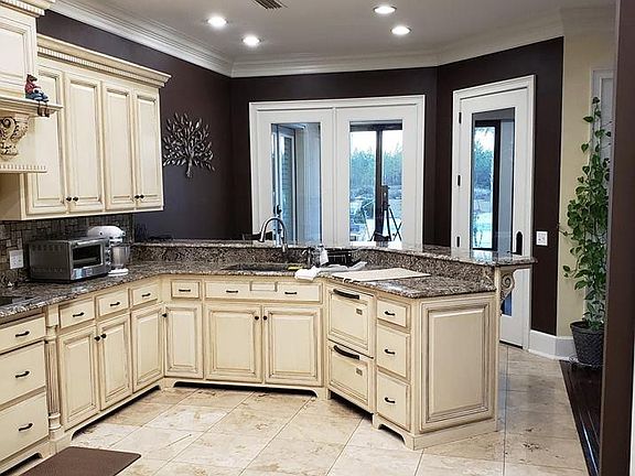 - Alarm System, Kitchen Island, Separate Shower, Eat In Kitchen, Bookshelves, Whirlpool Tub, Specialty Ceilings