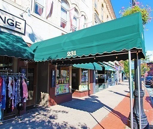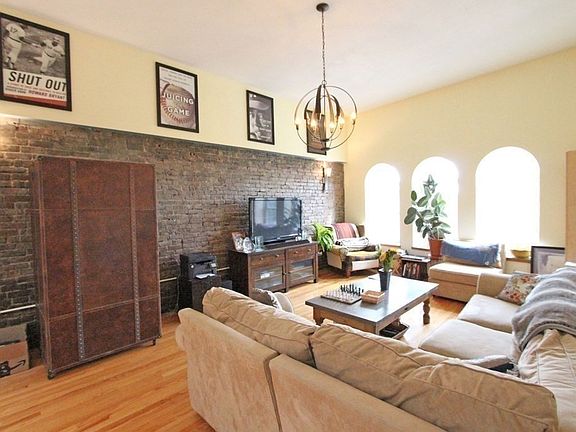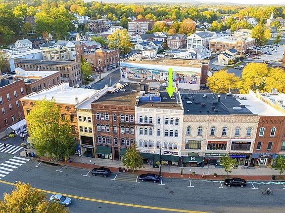 Enjoy the view from this stunning 2 bedroom condo in the heart of downtown Northampton. Light, bright penthouse unit with multiple skylights and roof rights. The expansive open living space features arched windows, high ceilings, exposed brick, hardwood floors, and Hubbardston Forge lighting. From the open living room, three palladian windows look out over City Hall, Memorial Hall, and Pulaski Park. Beautifully renovated kitchen with painted wood cabinets, soapstone counters, custom lighting, and stainless appliances. Down the hall are two bedrooms, including one with a small balcony overlooking the famed Hestia mural, and a full bath with tile floors, plus bonus utility room w/stacking washer & dryer included. Seller will kick in a year of garage parking for free! Dogs under 35 pounds allowed.