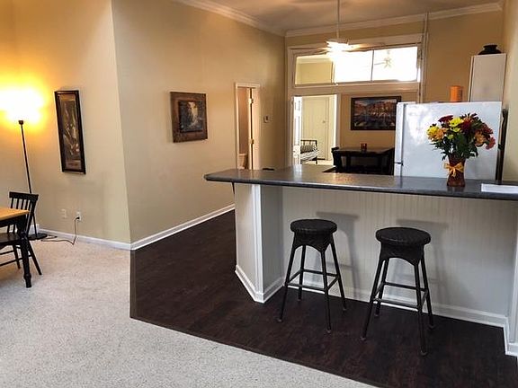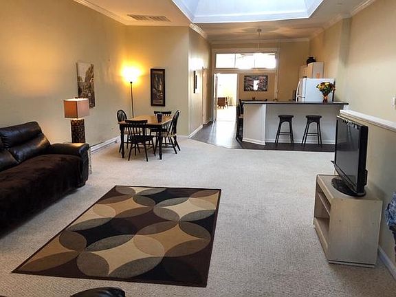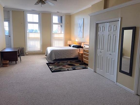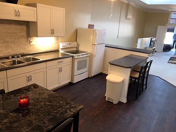 This is an amazing Main Street loft apartment. It is open concept with a clerestory in the living/kitchen area. All ceilings are at least 12 feet high. Deck off the back. Front bedroom is 15 x 19 with an original slate wall from 1920's stock market and large windows in the front overlooking the historic courthouse campus. Second bedroom is 16.5 x 28.5!! Large closets in both bedrooms. Newly remodeled kitchen and bathroom. City has just completed a $5 million trail project in front of this property. Riverbend Park is two blocks south. Street parking along the front and side of the building and off-street parking around the corner. The apartment is currently furnished. Great property for co-op students and other rental shares. Applications required. Rent includes water, sewer and trash fees. Minimum one year lease term.