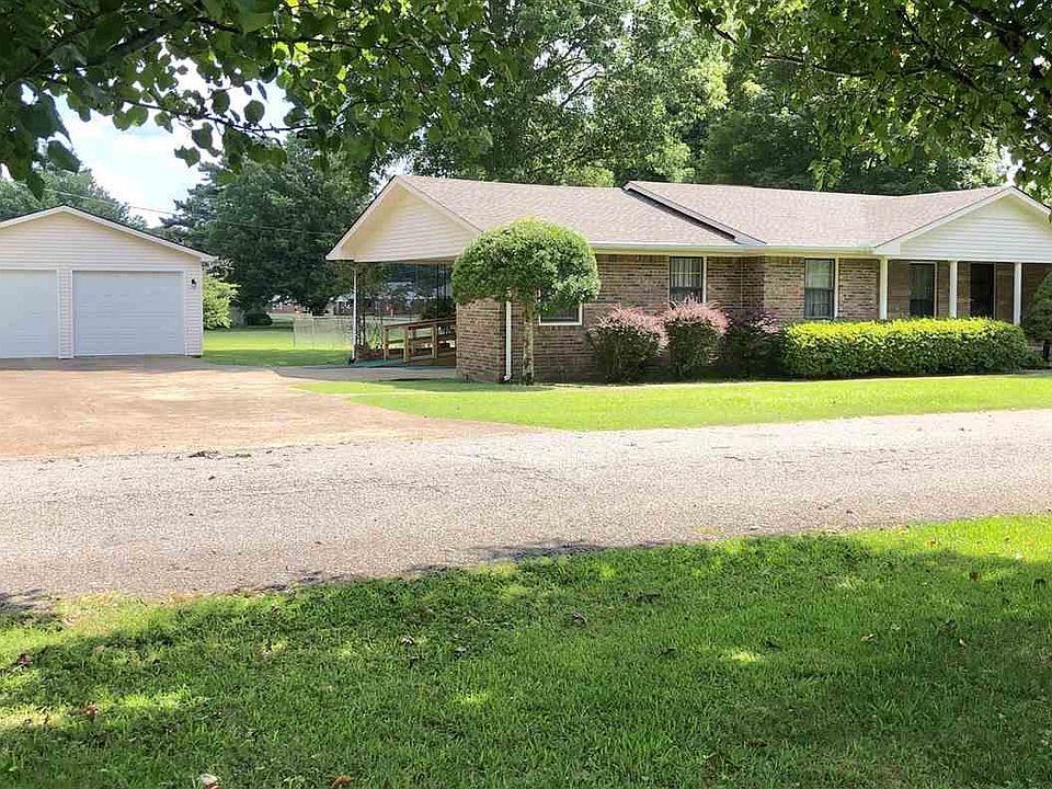 Nice 3 bedroom / 2 bath brick home on a large shaded corner lot. Lots of space with eat in kitchen and formal dining and living room. Separate den with gas fireplace. Nice fenced in backyard with large concrete patio. Additional 2 car garage added in 1991 with a workshop. House has a wheelchair ramp that can be removed and a handicap walk in tub. NEW ROOF! Sharon is a small country town less than 10 miles from UTM campus! Don't miss your chance!