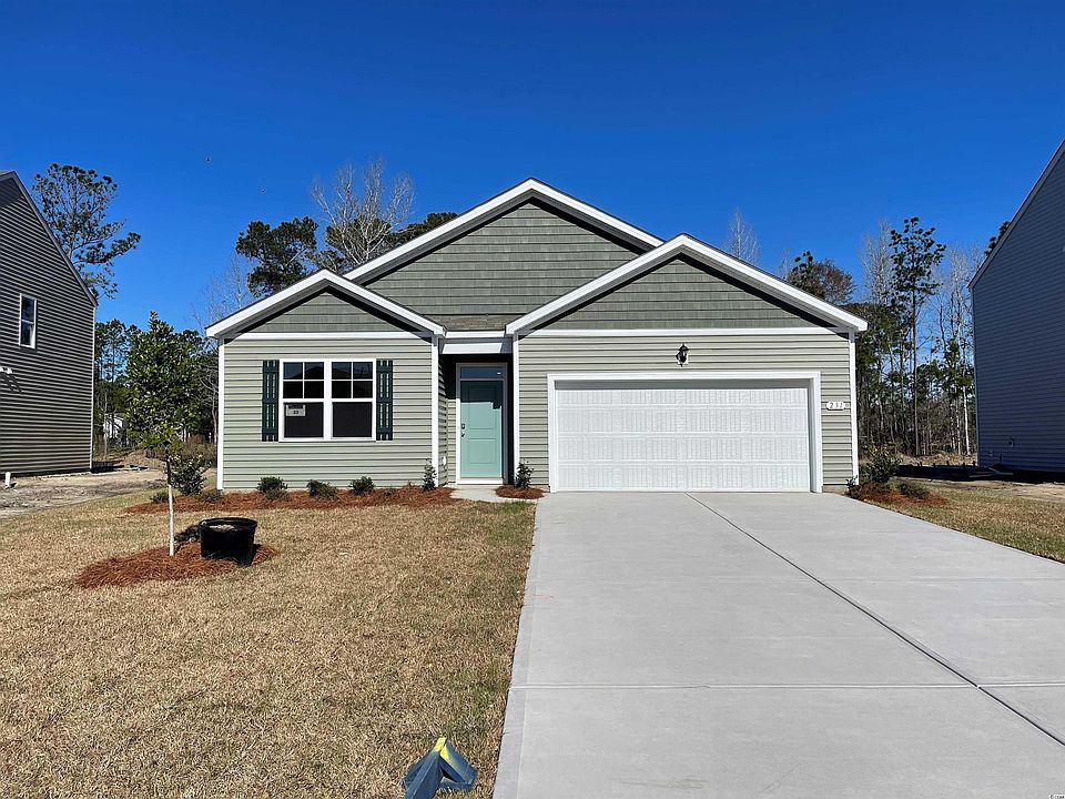 The Vistas at Sun Colony is a brand new community in Sun Colony. Convenient location near the new Highway 31 connector with easy access to all of the Grand Strand. This new community offers open concept single story and 2-story homes. Our Cali plan is a thoughtfully designed one level home with a beautiful, open concept living area that is perfect for entertaining. The kitchen features granite countertops, an oversized island, 36" painted cabinetry, a walk-in pantry, and stainless Whirlpool appliances. The large owner's suite is tucked away at the back of the home, separated from the other bedrooms, with a walk-in closet and spacious en suite bath with a double vanity, 5' shower, and separate linen closet. Low maintenance laminate flooring in the main areas gives the look of wood with easy care and cleanup! Spacious covered rear porch adds additional outdoor living space. This is America's Smart Home! Each of our homes comes with an industry leading smart home package that will allow you to control the thermostat, front door light and lock, and video doorbell from your smartphone or with voice commands to Alexa. QuickTie framing system also included. *Photos are of a similar Cali home. (Home and community information, including pricing, included features, terms, availability and amenities, are subject to change prior to sale at any time without notice or obligation. Square footages are approximate. Pictures, photographs, colors, features, and sizes are for illustration purposes only and will vary from the homes as built. Equal housing opportunity builder.)