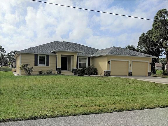 Almost new! this 2014 waterfront 4 bedrooms, 2.5 bath, oversized 2.5 car garage with 2 garage doors, heated southern exposure lap-pool home is amazing! The double plain front doors are opening on a great room open floor plan. The house is tiled throughout, even the covered porch is tiled! High ceilings, open kitchen with granite countertop, all stainless steel appliances including wine cooler, 2 pantries, wide opening on the paved lanai and pool deck, lanai has electric rolling hurricane net, the lap pool is heated with solar panels and pool heater, the cage has privacy bottom screen panels. the property is waterfront on a freshwater canal which is great for the view and for the irrigation of the yard with St Augustine grass. The pool deck is spacious.. enjoys South exposure with launches around the pool. The price is turn-key furnished "all what you see is included". The property is ready to move in, it is also a very good income property, ask agent for details.
