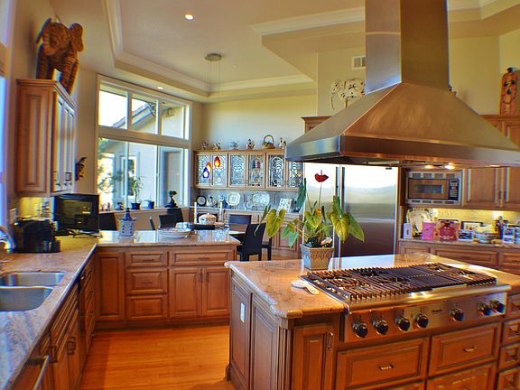 - KITCHEN FEATURES: Dishwasher, Garbage Disposal, Microwave, Breakfast Nook, Double Oven, Gas Range/Cooktop, Pantry, Refrigerator, Ice Maker Hookup, Island, Counter - Stone, Grill Built-in, Self-Cleaning Oven