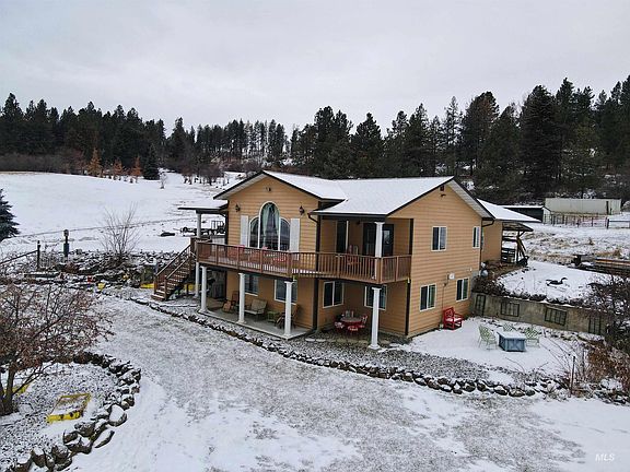 Beautiful 72 acre ranch in North Central Idaho! Custom 2640 sq ft home with 3 bedroom, office, safe room, 2.5 bath, wood burning stove, propane furnace and central A/C. Plus a massive insulated 2900 sq ft 4 bay shop with kitchenette and bathroom with wood burning stove and propane furnace. Set up for horses, has three run in shelters with corrals, three separate fenced gated pasture areas, round pen. No need to trailer, ride on your own property! 40 acres is planted with hay, no irrigation needed, feeds our 3 horses with plenty extra to sell! Two 12x12 chicken coops with fenced yard. Two year round ponds. Geese and ducks abound, along with whitetail deer, turkeys, quail, and occasional elk. If you desire, you can legally hunt on your own property. Multiple springs, timber, and a 100 gpm artesian well. Many fruit trees (peach, pear, cherry, plum, apple, walnut, hazelnut) throughout the property. Also high producing berry bushes - blackberry, raspberry, strawberry and goose berry. Come see this 1 of kind house!