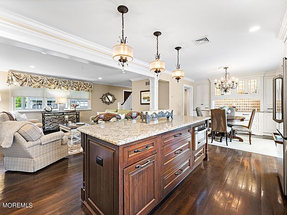 Welcome to this meticulously maintained Oceanport home, where pride of ownership shines. Gleaming wood floors and light-filled rooms create a warm atmosphere. The open floor plan features a custom kitchen with a center island, pantry, and dining area overlooking the family room with a gas fireplace. A versatile office/playroom with French doors and its own fireplace provides an ideal space for work or play. Upstairs, the primary bedroom offers a tranquil retreat with a private bath, three additional bedrooms and an updated bathroom provide ample space. Step outside to a large back deck with a gas grill and firepit, overlooking a private, fenced-in yard. Close to top-rated schools, Charles park, shopping, and dining.