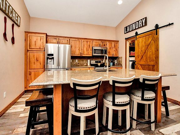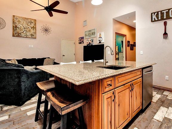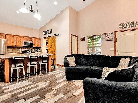 This unique property located in the Central Business District offers a fantastic combination of residential and commercial space. It is an Architect designed Barndominium with a full steel frame construction, setting it way apart from traditional pole barn structures. On one side of the building, you'll find a 1360 sq ft residence featuring three bedrooms, two bathrooms, and two offices. The open floor plan includes a spacious great room with a high vaulted ceiling that seamlessly flows into the island kitchen. The kitchen showcases knotty Alder cabinetry, Quartz countertops, soft-close cabinets, a pantry, and luxury vinyl floors. A separate laundry room with a charming barn door entry, window, and shelving adds convenience to the living space. The central hallway leads to the master bedroom, flanked by two bedrooms on one side and two offices on the other. All these rooms boast 9ft ceilings and ceiling fans. The master bedroom stands out with its 10ft ceilings, ceiling fan, can lighting, walk-in closet, and a luxurious bathroom. The master bathroom features a large granite top double vanity, an oversized Jacuzzi tub with a tile shower over it, and LVT flooring. In the center of the building, there is a drive-through 4 car garage with 8x16 overhead doors on each end and a two-story ceiling. This garage is fully insulated and heated with an overhead gas heater. There is a 2-hour fire rating between the garage and the finished living spaces. Additionally, there is a remarkable opportunity to expand the living space by adding 800 sq ft on the second floor of the garage. This additional space could be used for living quarters, an apartment, or storage by incorporating a set of floor trusses. The commercial/office side of the building features a well-designed office space with a separate outside entrance. This office boasts a high vaulted ceiling, a window for natural light, LVT flooring, and an adjoining ADA-compliant half bath with a tile wainscot. Additionally, there is a workroom accessible from the garage, complete with a vaulted ceiling and access to an 8x8 walk-in cooler. The backyard includes a convenient storage building, and the entire property benefits from a sprinkler system and an irrigation well. For added security, a camera system is included with the property. This one-of-a-kind property offers endless possibilities, combining a comfortable residential space with a versatile commercial area, making it ideal for those seeking a live-work setup or investment opportunity. The location of this property is truly remarkable, offering the convenience of being just a short ride, walk, or golf cart ride away from Old Town. This proximity allows you to easily access and enjoy the fantastic restaurants, vibrant nightlife, and entertainment options that Old Town has to offer.