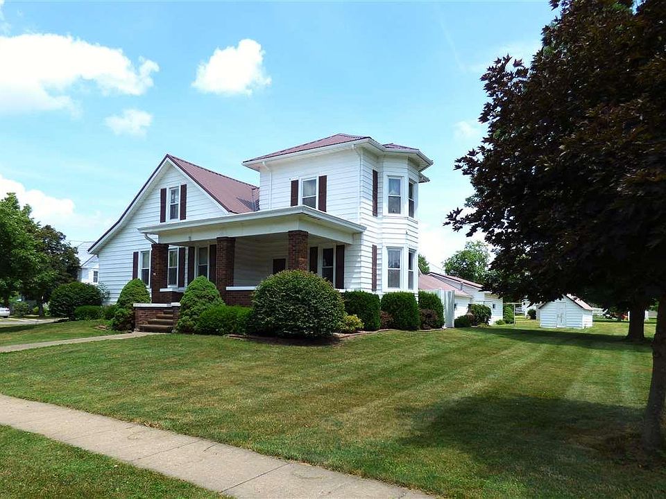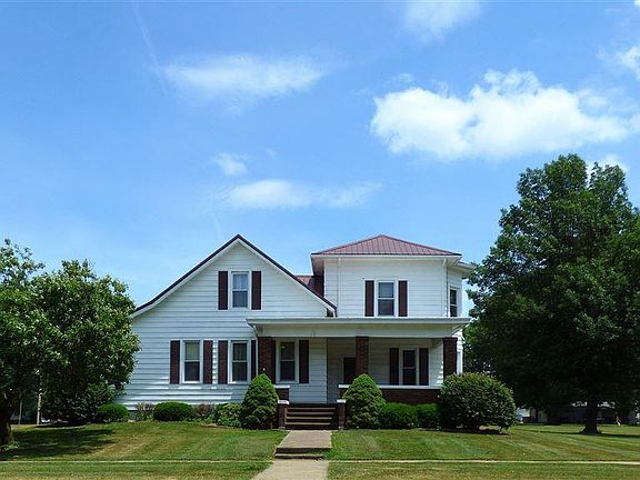 Fantastic, spacious home on over half acre corner lot in Camp Point with 22x30 garage as well as 18x25 additional heated garage. Newer windows, metal roof, carpet, furnace, water heater and gutters. Large open kitchen/dining with solid oak cabinetry. 5 bedrooms (has been used as a 6 bedroom) 2 full baths, finished lower level, covered front porch and room to grow all sitting on .63 acres in desirable community with great curb appeal. If you are looking for a home with room and a place to store all those toys or have a work shop - this is it! Hutch in bedroom dows not convey. Pool table and hot tub are negotiable.