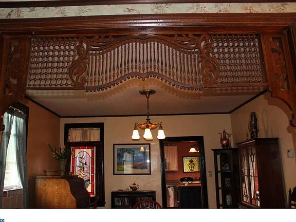 Lovely 2.5 story single boasts yesteryear craftsmanship, enhancements and WOW appeal! Beautiful woodwork, whimsical transoms artistically designed with beach glass, shells & gem-like stones, open staircase, and beautiful stained glass windows are just a few of the unique attributes of this loved & cared for home. Laminate flooring adds appeal to the Living Room, Dining Room & Kitchen. Fretted arch unites Living rm & Dining rm. Entry hall welcomes you home. First floor laundry, half bath, sunroom (Heated by electric bb) add convenience & desirability. Spacious & updated Kitchen. Enjoy the relaxing touch of a reading room/sunroom off the Master Bedroom. Super Spacious Modern Bath features oversized shower, soaking tub, modern vanity and private area w/sink & toilet privatized by pocked door, & there is even a built-in ironing board. Two rooms on third floor were utilized as bedrooms(However,heat is not hooked up). Antique lights in entry & Dining room were restored.Utility rm/Enclosed rear porch heated by propane heater. House was insulated & several windows replaced by owner. Tumble Blue Stone walk on left side of house leads to the lovely back yard complete with deck,brick patio, cabana pavillion w/bar (also has 220 line for hot tub), raised kitchen garden (was originally carport), storage shed, water fall w/pond. New wooden fence 2015.