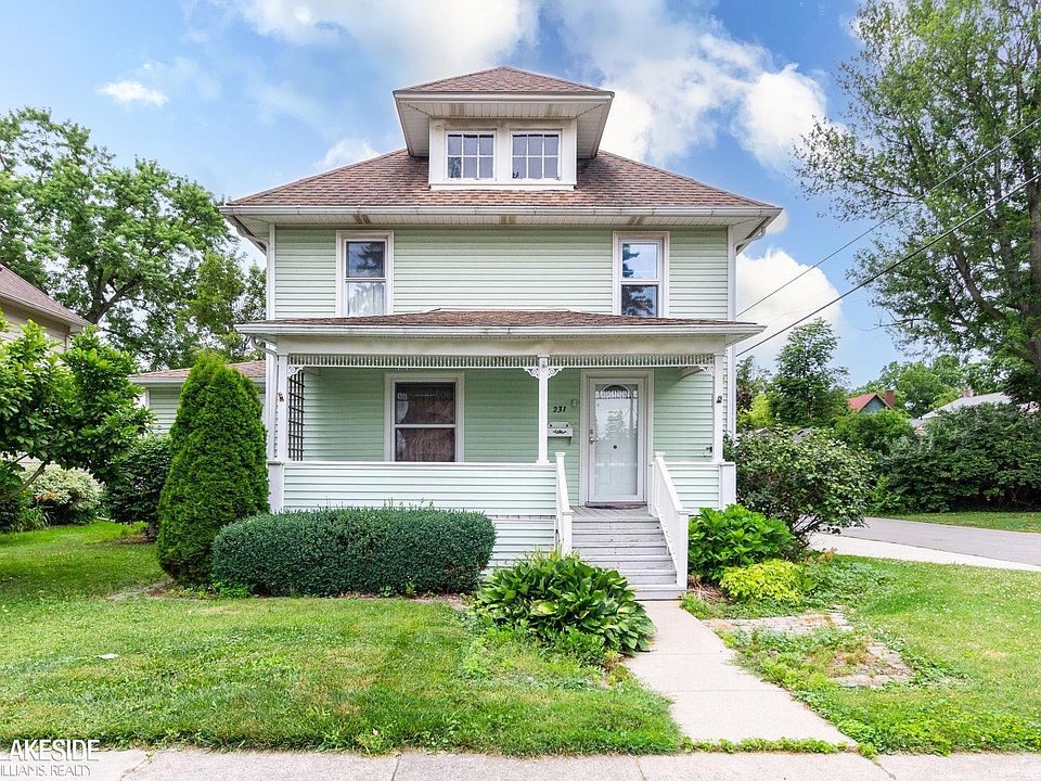 SALE IS SUBJECT TO PROBATE COURT APPROVAL. Lovely Village of Romeo home offering so many possibilities!! Formal living room, beautiful oak carved stairway, formal dining room, oak kitchen with newer stainless steel appliances; mudroom with built-in closets/ pantry for additional storage space; first floor primary bedroom with wood laminate flooring; large laundry room with lots of storage space; 2nd floor features four bedrooms and updated half bath. Michigan basement with GFA Arco Aire A/C & furnace, Culligan softener & generator panel for the whole house generator. Detached Carriage house for your yard toys, equipment, workshop, etc. Yard has many perennials, mature trees, wood deck & ramp, brick patio offering a shady place for a picnic or sit on the covered front porch with a view of the gazebo at the community park!