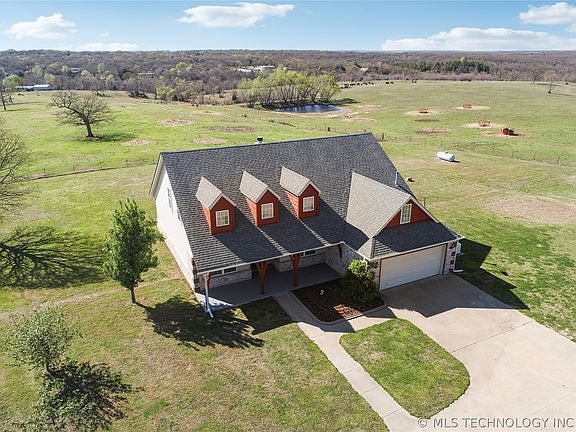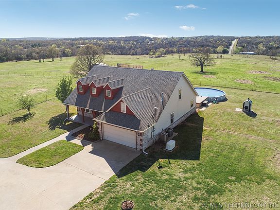 Room for everyone! Primary and two bedrooms downstairs. Three bedrooms upstairs. 10 acres, animals allowed. Above ground pool. Storm shelter and generator. Office and pantry. Come sit on your back porch and watch these gorgeous Oklahoma sunsets. Listing agent is related to seller.
