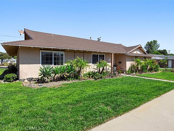 A classic and spacious SINGLE STORY home awaits, positioned on a private corner lot in an interior tract location, 231 N. Wheeler Street is now proudly presented to the market. A manicured landscape welcomes you with tropical inspired palms and plantings, a tiled front porch and newer glass accented front door lead the way inside. The interior of this home is comfortably laid out and all rooms, both living and bedrooms, are generously sized. Updates completed under prior ownership include; roof, windows, HVAC and plumbing. Recent updates include interior paint and ceiling texture, updated light fixtures, Decora light switches (some with dimmers). Hardwood floors are believed to be under the carpet in most rooms, buyer to verify. A generously sized living room features one of two fireplaces in the home, this one a handsome red brick, a sliding door provides easy backyard access. The welcoming dining room hosts the second fireplace, this one a retro 60’s stone finish, a sliding door and beamed ceilings complete the dining room. Functional and tidy the kitchen enjoys ample counter space, an electric cooktop and built-in oven. Convenient inside laundry connections are found in a closet in the kitchen. Down the hall three generously sized bedrooms offer original hardwood flooring and ample closet space. The large hall bathroom features an expansive vanity and tile surround around the bathtub/shower. The primary suite enjoys a private location off the main foyer and is a peaceful space with dual closets, updated light fixtures and switches and a ¾ en-suite bathroom with tile shower and stylish updated fixtures. Two sliding doors lead from the interior to private backyard enjoying a concrete patio and lush green lawn. Tropical plants including plumeria and palms compliment the yard. Two sheds and a 2-car detached garage complete the property and provide ideal storage space. Come and enjoy this convenient Orange location moments to schools, shopping, dog park and 55 fwy.