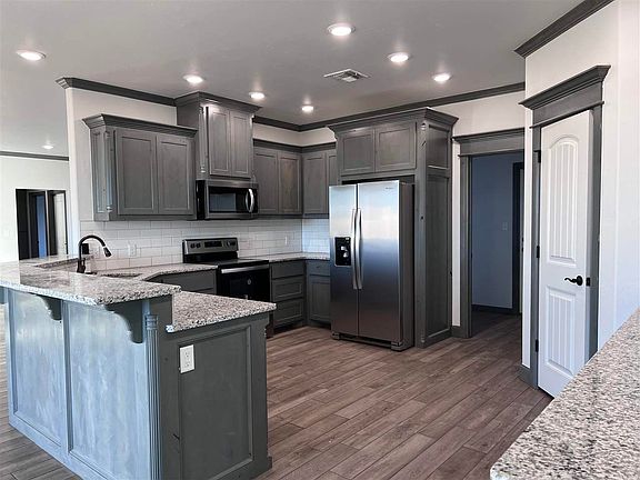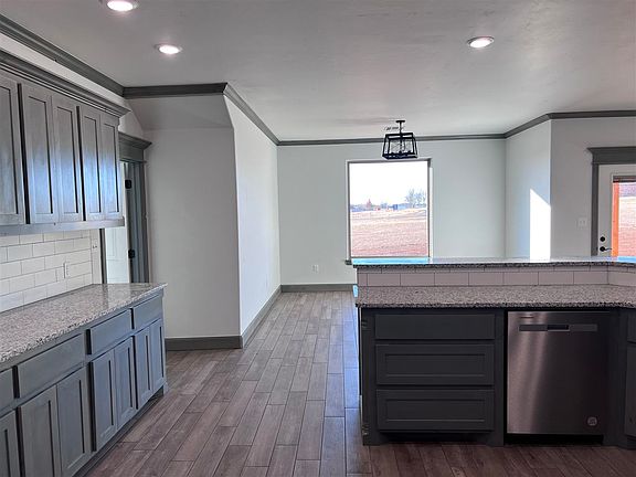 This 4 bedroom, 2 bathroom, 2200 sf home is a dream pleaser. The large kitchen provides an abundance of storage and counter space. Custom cabinetry throughout, granite countertops, stainless appliances to include refrigerator, and beautiful tile floors everywhere except the bedrooms which are carpet. The primary bedroom is amazing with the bathroom including a double vanity, large tiled shower, whirlpool tub and large walk-in closet. All of this on over an acre. Take a look around with the 3D tour then call listing Broker Debbie McDonald 580-695-8552 for your personal viewing.