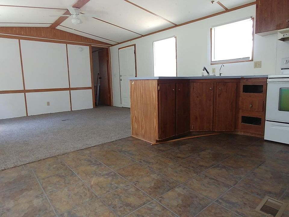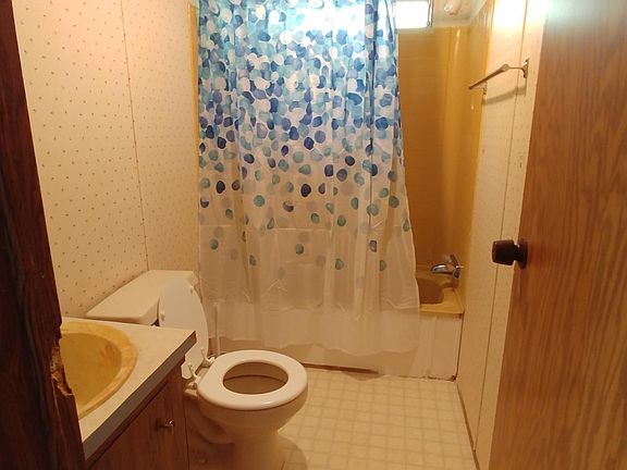 2 bedroom 1 bathroom mobile home. Fenced yard, Covered front deck. central heat and air.