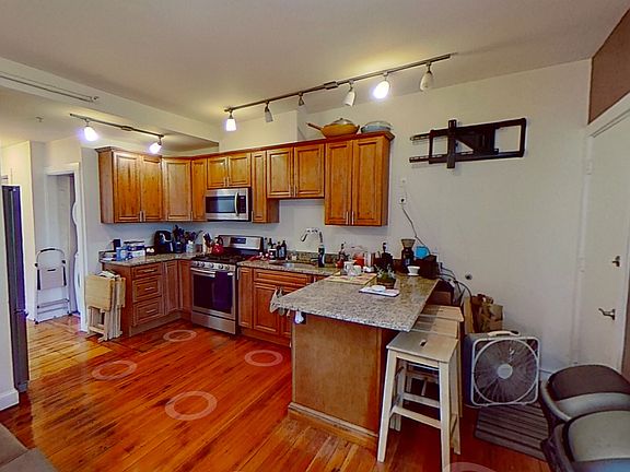Features of the apartment: - Sunny, 2nd floor, totally renovated. 2 Brand new bathrooms (with designer tile showers), New kitchen w/ Stainless steel appliances and Granite counters, There is also a Hi Efficiency Washer & dryer in the apartment. The sizes of the Bedrooms are approximately : 11'x16' / 8.5'x12' / 16'x11' / 9'x10' & 12'x13'. Note: There is no separate living room in this apartment but there is room for a small couch in the large kitchen and there is wiring for a wall mounted flat screen TV. This can also be used as a four-bedroom apartment if desiring to use one of the rooms as a living room. There is a large back yard with Patio suitable for BBQ's and small gatherings. - Street parking avail - High ceilings - Students welcome - Pets negotiable
