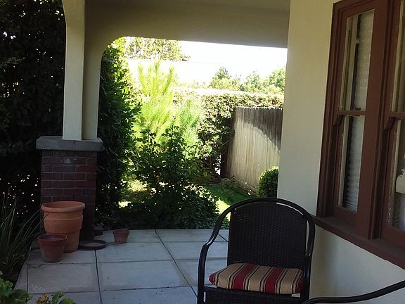 1925 architecturally preserved Craftsman bungalow. Excellent condition, modified slightly for open NYC SOHO loft spacious feel. New Pex plumbing, electrical outlet, lighting upgrades, new 40 yr. roof in 2015, new paint, original oak and fir wood floors, R39 attic insulation (low utility costs), fully landscaped. One original full bath, one newer bathroom off kitchen with stained glass and block windows. House has good flow from inside to outside with decorative gardening, mature trees, wrap around sitting porch, three year old cement patio with firepit. Commercial-grade orange tree produces fabulous fruitalso Hass avocado, grapefruit and lime treesentire property is on automatic watering. House is framed in heart of redwood; has cellar. Alarmed with security lighting. Original kitchen modernized; new stove, never used, rarely used dishwasher, and refrigerator come with house, if desired. Kitchen cabinets were modernized, but left with original charming fascia for Monet style feel.