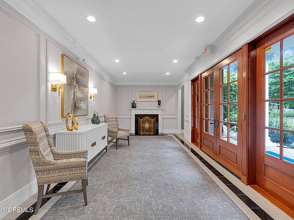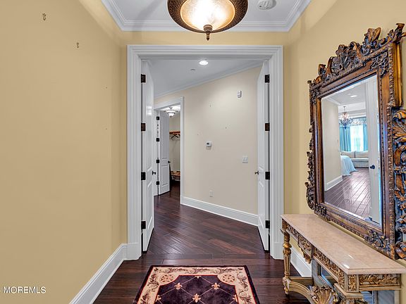 Experience the amazing lifestyle at The Monmouth in this custom-designed home! Maintain your privacy while not feeling isolated in this sprawling property with over 4,200 square feet of spacious, open design. You'll love the hardwood floors, tile baths, high ceilings, custom built in bookcases and porches with views of the pool and sunsets. This elegant 55+ community offers a fantastic clubhouse loaded with amenities, including indoor and outdoor pools, a fitness center, and an 18-hole putting course. Plus, you'll appreciate the convenience of an elevator in the secure building, making access a breeze. Additional amenities included are a heated, oversized two-car garage right on the ground level with secured entrance and gated security entrance onto the property.