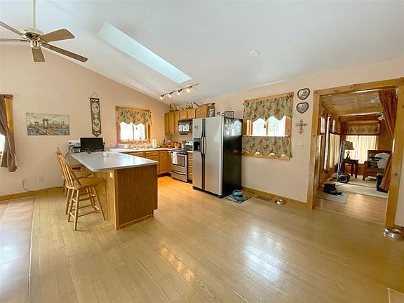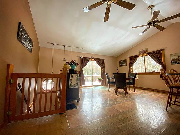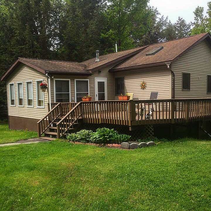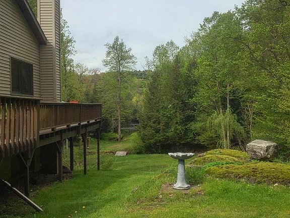 Located on a knoll overlooking a lovely stream as it enters the Grasse River, this home is perfectly positioned to capture natural light and its surroundings! Enjoy the sound of nearby waterfalls and flowing water from the wrap around deck, or walk down the hill to a lovely seating area right at the shoreline. Inside, on the upper level, you'll find cathedral ceilings and an open concept floor plan. Also on the upper level enjoy a sunroom, the master bedroom, a full bathroom, and a large pantry. Walk downstairs to find two bedrooms, a second living room with a walk-out sliding door aimed toward the river, a second full bathroom, and a dedicated utility room. Such a beautiful lot and home are hard to come by!