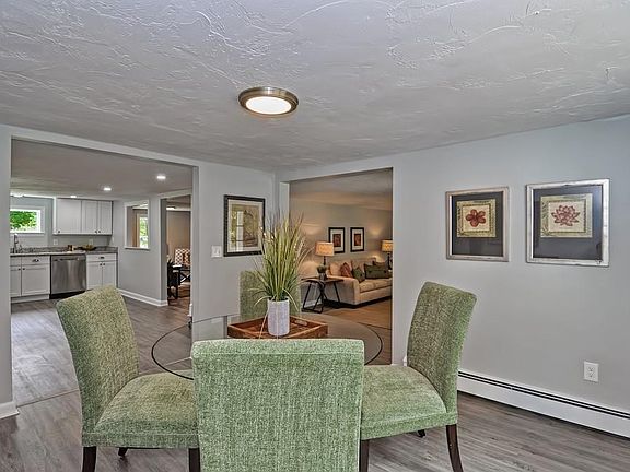 Wow! This newly renovated home sits back from the street on a large level yard. All new flooring, fresh interior paint, new roof, and many new windows leave you nothing to do but move right in! The eat-in kitchen features stylish vinyl plank flooring, new cabinets, granite counters, stainless appliances, recessed lighting, and a pass through to the formal dining room. Open concept living, dining, and family rooms are perfect for entertaining. First floor also boasts a home office, space for laundry and a 1 3/4 bathroom! Upstairs features a generous landing, large bedrooms with brand new carpeting, and a full bath. The master bedroom is big and bright with two full closets. The full bath features new flooring, new vanity and fixtures. There is plenty of parking with the paved driveway and the double garage featuring extra space well situated for a workshop or storage. The home is surrounded by a beautiful level garden area, perfect for summer cook outs.