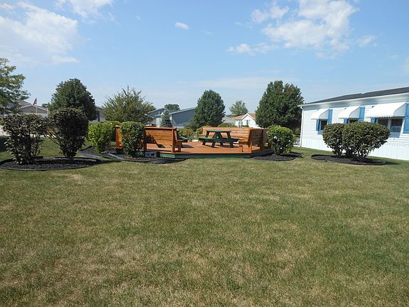 Deal fell apart back on the market! 28'x70' all drywall Franklin Rockwood 3 BIG bedrooms and 2 1/2 baths w/ over 1950 sq feet of beautiful living space! Professional landscaping, oak surround fireplace, eat-in kitchen, and island/Breakfast Bar. Downdraft cooktop and DOUBLE OVEN. Laminate floor entry with double coat closet. Floor-to-ceiling pantry. Large 25' master suite (you could put 2 king sized bedroom sets in this bedroom) w/his and her baths featuring a soaker tub & separate shower with warehouse size closet between the 2 bathrooms. Huge deck. MASSIVE 32' LONG garage and concrete drive PLUS 8' HIGH OVERHEAD DOOR THE ONLY ONE IN THE COMMUNITY! This 8' high door is good for covered tow behind trailer storage as most of the trailers will fit in this garage. Backs up to one of Maple Brook's large parks so no one behind you but a beautifully landscaped park! Laminate in the kitchen and laminate in 2 bedrooms. Berber carpet in living and master bedroom. Newer roof. 55+ community with Chicago water and sewer and clubhouse with activities. 14'X 26' dancefloor-sized deck. Deck, disposal, rear storm door, and sunsetter awning as-is. Newer roof on home. All appliances stay except washer/dryer. Newer dishwasher. THIS HOME HAS PASSED THE VILLAGE INSPECTION.