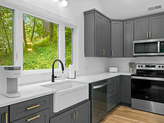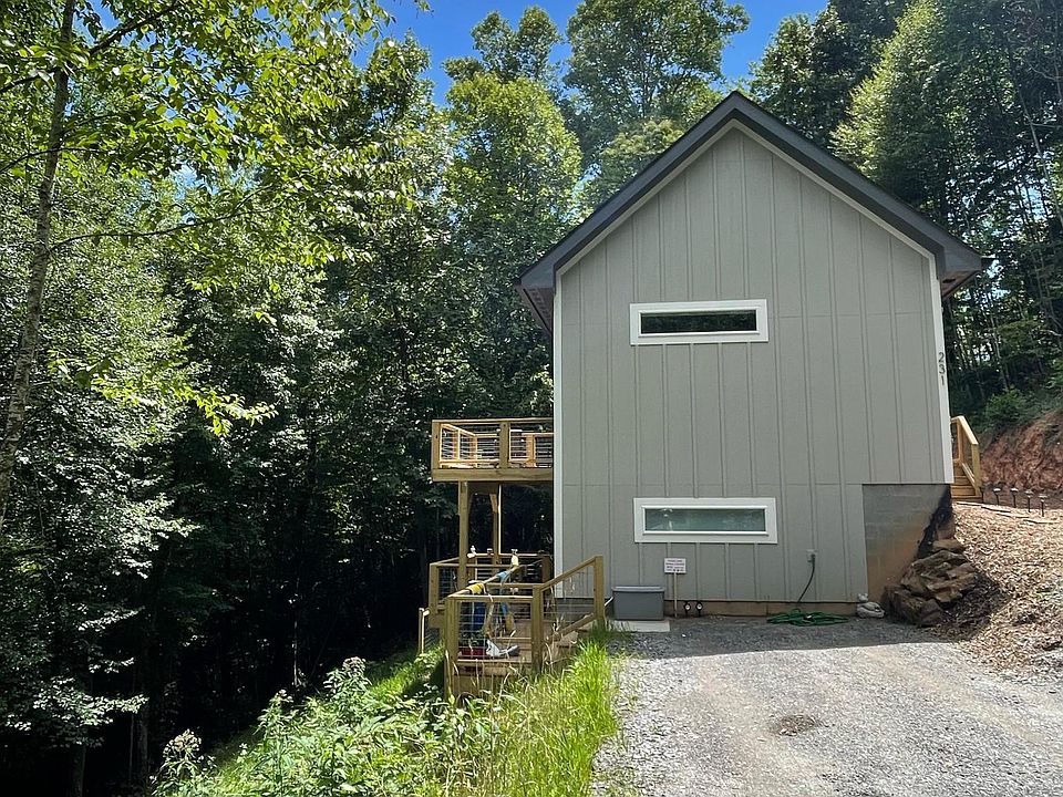 Built in 2023, this beautiful home features 2 decks with mountain views, a small creek, a full kitchen upstairs and an efficiency kitchen downstairs.