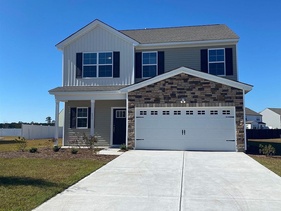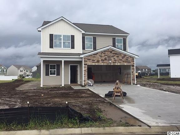 Welcome home to the Rutherford! Live a laid-back lifestyle in your new home at Merrill Villas! Located in Carolina Forest – one of the most popular communities in the area, with an award winning school district – between Myrtle Beach and Conway along the west side of the Intracoastal Waterway. Not only is your new home close to great dining and shopping, you’ll be less than 5 miles from the beach and close to championship golf courses giving you that living-the-good-life feeling. This natural gas community gives you easy access to the Myrtle Beach Airport and HWY 31 allowing you easy access to Myrtle Beach, Conway, North Myrtle Beach and the rest of the Grand Strand. This beautiful two-story home features 4 bedrooms, including dual primary bedrooms, three full and one half baths and a covered back patio perfect for outdoor living. The first-floor primary bedroom features a vaulted ceiling, large walk-in closet and en suite bathroom with a raised vanity hosting dual sinks and a luxurious quartz countertop. The kitchen features white cabinets, granite countertops, and stainless-steel appliances. Upstairs you’ll find an additional primary bedroom complete with large walk-in closet and en suite bathroom with a vanity hosting dual sinks and a luxurious quartz countertop, two additional bedrooms with walk-in closets, one full bathroom and a loft perfect for a family game area, lounging or even a reading nook. Your new home is estimated to be completed in November.
