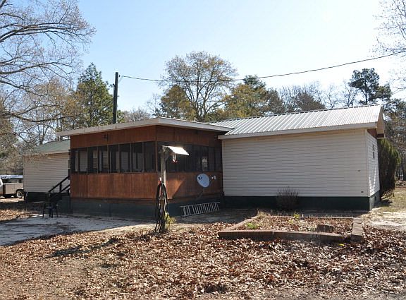 3 BR/2 BA mobile home on permanent foundation on 3.93 acres with 15 x 16 screened porch, 3 outbuildings, BBQ house and pit.