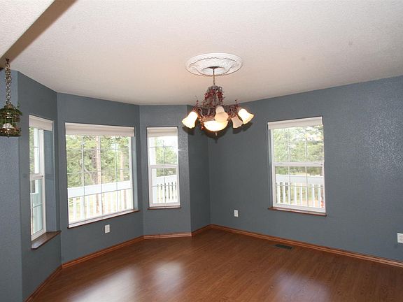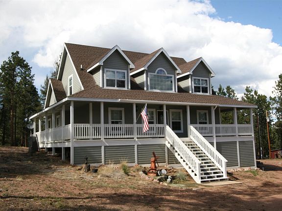 Beautifully crafted home in the mountains, covered porch with full wrap-around decking. Views of Pikes Peak from the front porch. Main level living Master Suite with 5-piece bath and walk-in closet. Open design floor plan with two story living room, wall of windows. Formal dining room plus a breakfast nook off the kitchen. Gourmet kitchen with cherry cabinets, and slate counter-tops. The oversized garage includes a double decker dumb waiter for delivering groceries up the stairs! The upper level loft overlooks the living room, and includes 2 nicely sized bedrooms each with vaulted ceilings and large walk-in closets, and a full bath. This home also includes a full unfinished walk-out basement which is plumbed for an additional bathroom, and the potential for an additional bedroom, plus a family room. Located just under the front deck is a covered and enclosed storage area for a workshop, which has an electric draw gate door for storing larger equipment, such as an ATV or snow blower. The 2 acre parcel is usable and level, nicely tucked in the trees. Rear patio with fully lighted gazebo for back yard entertaining make this setting an inviting place to spend your summer evenings. Located only 30 minutes to Woodland Park, and only an hour and half from ski resorts and the Continental Divide.
