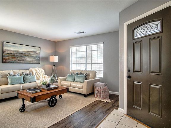 This single story 4 Bedroom 1521 sq foot home is located close to shopping and restaurants. Freshly painted inside and out with beautiful new floors. It is spacious, light and bright. Beautiful high ceiling in the family room with a wood burning fireplace. The nice size back yard is ready for your personal design.There is a storage unit for all your extras. This home has a spacious two car attached garage. The water heater was recently replaced and the Refrigerator is also a recent addition. All inspections are done and ready for your review.