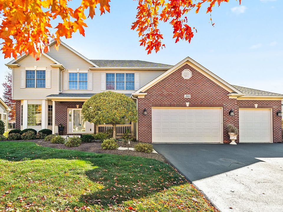 Beautifully updated home features fresh paint throughout, giving it a bright and inviting atmosphere. The refinished hardwood flooring adds warmth and elegance to the main living areas, while the newly deep-cleaned carpets provide a cozy retreat. AMAZING 4-CAR GARAGE!!! 2024 Trane air conditioning system. Welcome to this stunning home in Hampshire! Discover a formal living room and an elegant dining room. The open kitchen, featuring sleek stainless steel appliances, a beautiful island/bar, and an eating area, seamlessly flows into the family room adorned with a brick fireplace. On the second floor, you'll find the beautiful primary bedroom with an elegant bathroom and two walk-in closets. The three additional bedrooms are spacious, and there is a full bathroom in the hall. The main floor includes a beautifully designed powder room and a laundry area providing access to the spacious four-car garage. The expansive lower level features a bar with a wine refrigerator and a family room, perfect for entertaining or hosting gatherings. Situated on a well-maintained lot with gorgeous landscaping, the fenced-in backyard features a stunning patio with a pergola. Conveniently located near Hampshire Middle School, this exceptional home is a must-see!