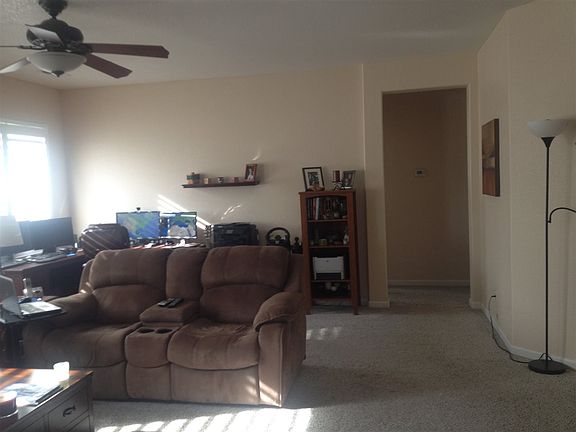 MOVE IN READY! This home is your perfect opportunity to move right in and start living. Entering the front door you walk in to a very open family room with high ceilings and fan and lots of natural light. The neutral paint and newer carpet compliments the room extremely well. Walking into the kitchen your eyes will light up with new laminate wood floors and a huge island. This kitchen is a cooks dream! Plenty of beautiful counter space and cabinet space with newer appliances make cooking fun and easy.