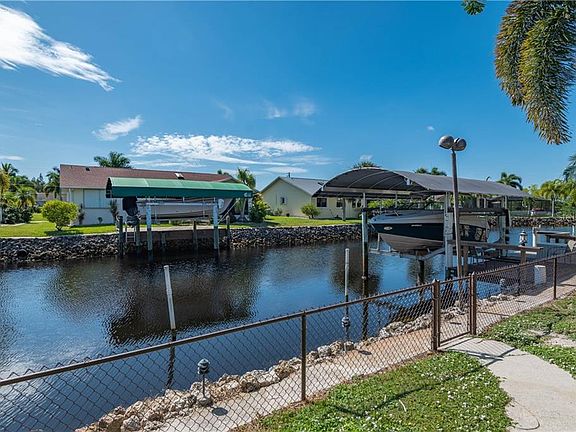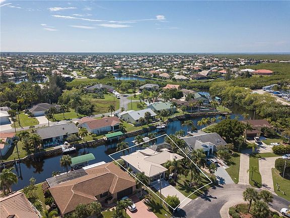 FABULOUS 2/2/2 WATERFRONT POOL HOME WITH SAILBOAT ACCESS TO CHARLOTTE HARBOR LEADING TO THE GULF OF MEXICO! Quiet cul-de-sac location with 91' of water frontage on deep canal with rip rap seawall, 10,000 lb. covered lift, electric and water dockside and only 25 minutes to open water via Alligator Creek. Beautiful open floor plan with cathedral ceiling, ceramic tile throughout, plantation shutters, bonus room, kitchen with raised panel cabinetry, stainless appliances and tile backsplash leading to dining room overlooking water views. Split bedroom plan features two ensuites. Master suite offers his and hers walk-in closets, access to pool and private bath with dual sinks and walk-in shower. 2nd suite offers in room access to spacious full bath with large closet. Guests from the north can enjoy an abundance of Florida sunshine from the southwest facing lanai and screened solar heated pool. Additional features include impact windows, accordion shutters, whole-home water treatment system, screened garage and fenced backyard. Close, friendly community close to I-75, restaurants, shopping and historic downtown Punta Gorda with community events, entertainment plus much more and just a short drive to SWFL gulf beaches. Don't miss this opportunity! Call for your private showing today!