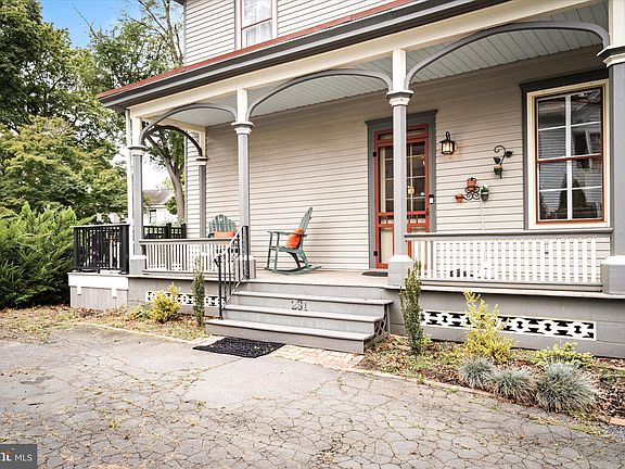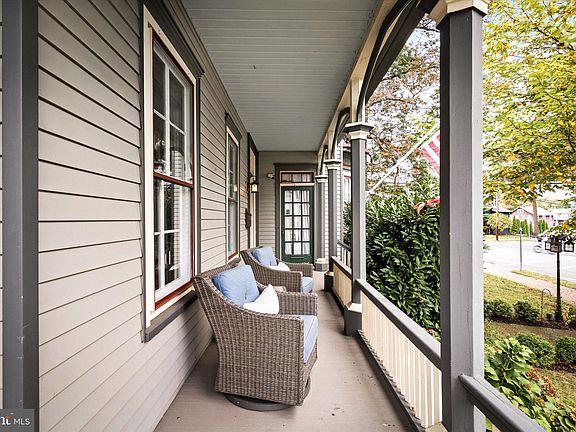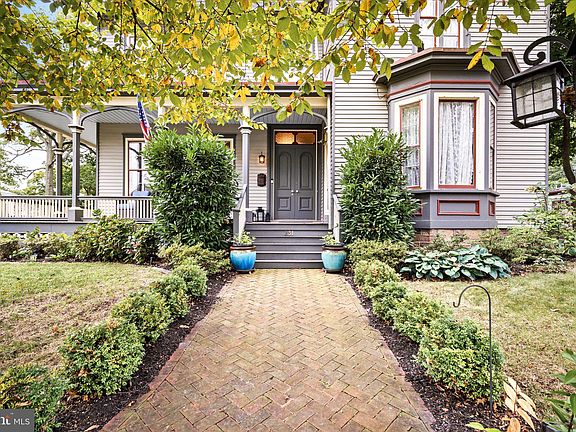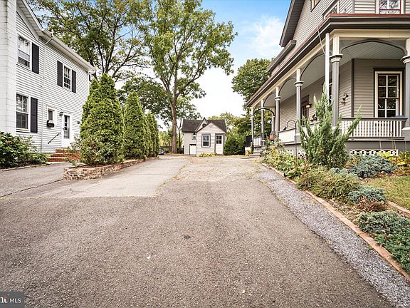 Stunning Victorian home located in the heart of Hightstown! Constructed on the highest point in Hightstown, this home has much of the original post-civil war features including wide plank pumpkin pine flooring, original hand-painted ceilings and decorative fireplaces. As you enter this home, you will love the wrap-around porch that is ideal for your relaxation as you enjoy your morning coffee. Upon entering you have a large family room, living room and dining room. The family room complete with a wood pellet stove can also be converted to a bedroom if the buyer chooses to do so. The kitchen was remodeled with bamboo flooring, abundant cabinets, stainless steel appliances and a beautiful marble backsplash. The perimeter counters are Pietra Cardoso slate and the island is a stunning Sea Pearl quartzite. From the kitchen, it is easy to go onto your deck (2022) to enjoy your yard, brick patio, mature plantings and garden. The yard is fully fenced. From here your 2 story carriage house and shed are only steps away. As you proceed to the upper level, you have three/ four bedrooms. Owners have made a large laundry room/master closet from one of the bedrooms but the buyer can easily convert that back to a bedroom. Two full bathrooms that have been totally updated. New hot water heater 2022, and the main sewer line was done in 2023. Home has central a/c. The basement is partially finished. Large yard can accommodate your family gatherings or just your weekend BBQ with friends. Close proximity to major roads: route 33, route 133, route 130 as well as NJ Turnpike with easy access to NYC or Philadelphia. Close to stores, restaurants, malls and only minutes from downtown Princeton. Move-in home..must