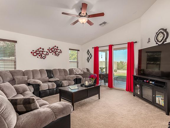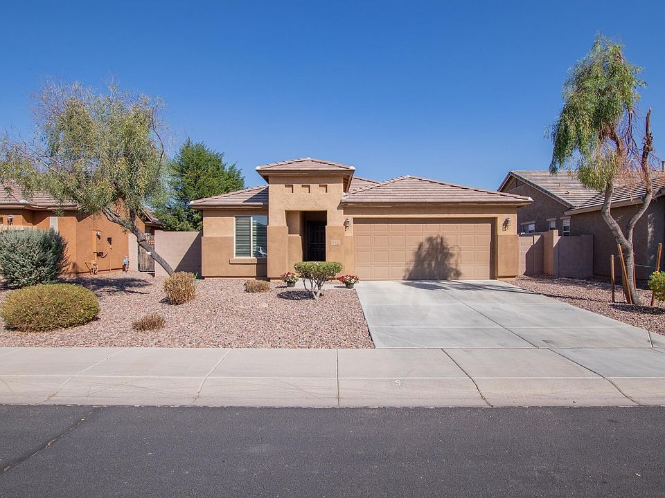 This beautiful home is conveniently located in a quite neighborhood with close access to the freeway. Enjoy neutral paint tones and an open floor plan. The charming kitchen has dark cabinets and granite counter tops and an island with a breakfast bar and NEWER mark resistant ss appliances as well. A cozy flex space for the family to enjoy just down the hall. Relax in the master suite with an attached full bath and double sinks, and a walk in closet. You will LOVE this floorpan with private in-law suite set up in front of home, secondary bedrooms and jack and jill type bath in middle with Master at the back and OPEN great room. Invite family and friends over to enjoy your private back yard with an open field view (no back neighbors!) and covered patio. Don't miss this one!