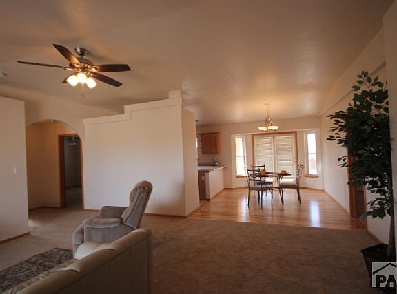 Beautiful Ranch style home in great location on 1 acre. This split bedroom design features 3 bedrooms, 2 baths and 2 car garage. Home has new stain master carpet, hardwood floors in the dining area, tile in the kitchen and bathrooms. Big covered patio off the back of the house to enjoy the mountain view. New Central air, electric range, built-in microwave, dishwasher and refrigerator installed 11/2014. Covered front porch and a circular drive. Fully fenced backyard with xeriscaping. Located close to Highway 50, shopping and 9 miles to the Pueblo Reservoir.