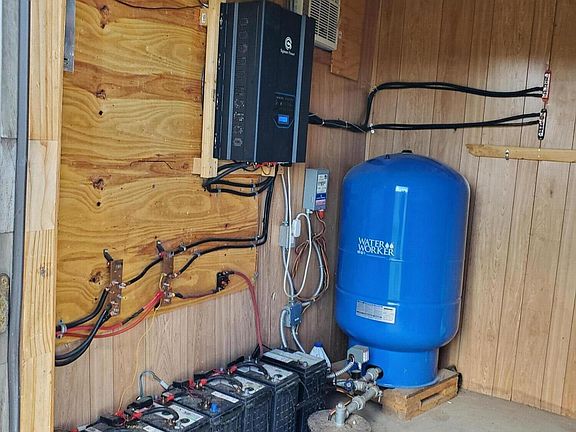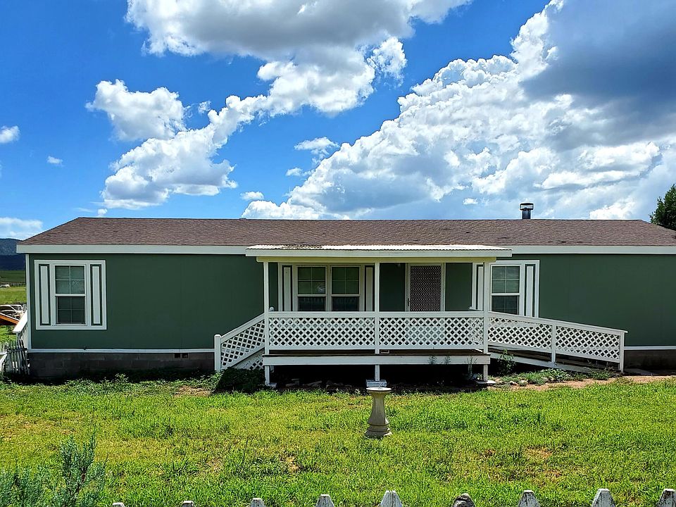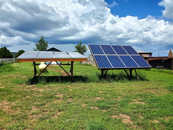 Has 1500+ sq ft , manufactured home. Equipment storage/cover with shelving. Goat/livestock pens, chicken coop. Vegetable garden area. Wood deck to enjoy the mountain views. Septic, well, solar, all in and functioning. Solar system is 4000 watts, 12 kw inverter. off grid settings. Freshly painted inside and out. Remodeled kitchen and new flooring. Sellers anxious to sell.