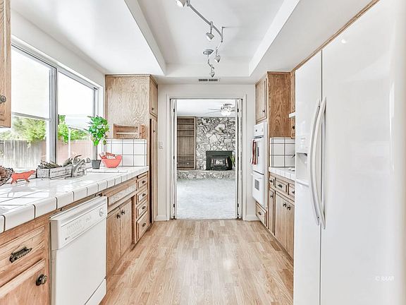 Looking for space? Room to grow? This 4 bedroom , 2,026 square foot home is it! Well taken care of home with laminate wood flooring and carpet. SELLER NOW GIVING CARPET CREDIT! Nice bright kitchen with big window overlooking the back yard. White appliances and plenty of built in storage cabinetry. Family room with rock fireplace and shelving. Great size living room with window to front yard. Master bedroom with sliding door to outside and open vanity area in bathroom. Guest bathroom with double sinks! Backyard is nice and green with big covered patio. Looking for a she shed, craft room or maybe just extra storage? We have that out in the back yard! Home also has HUGE RV cover! All this is sitting on a 9,500 square foot lot! Plenty of space! Don't let this one go.