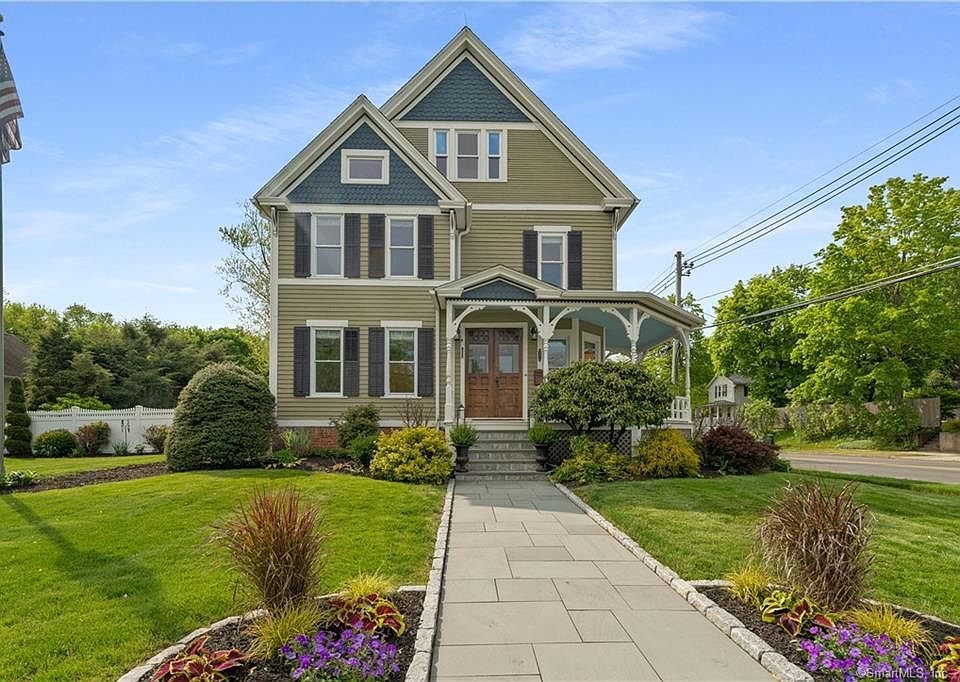 Welcome to your dream home, walking distance to Wallingford’s town center! This stunning 4-bedroom, 3.5-bath Victorian built in 1891 is the perfect combination of history with modern updates. Relax and unwind on the fabulous wrap-around front porch. And as you step through the double doors into the charming parlor, you'll feel the warmth and character of this beautiful home. Both the formal living and dining rooms feature pocket doors, which provide efficient use of space for either large gatherings or more intimate dinners. The chef's kitchen features beautiful leathered granite countertops, new stainless steel appliances, and a pantry for all your cooking essentials, along with a cozy breakfast nook. French doors off the dining room lead to a deck and professionally landscaped and fenced-in yard, where you can enjoy the majestic gardens and lawn, perfect for entertaining. The detached two-car garage provides ample space for parking and storage. On the second floor you will find three bedrooms, one of which has an ensuite bathroom. There is an additional hallway bathroom with second floor laundry. The third floor offers a fourth bedroom with an open concept. It also has an ensuite and newly renovated bathroom. Updates throughout the home include newly refinished hardwood floors, fresh paint, vinyl windows, central air conditioning, a newer furnace, updated powder room and 3rd floor bathroom, new paved driveway, among many others (see attached list of improvements)! The owners also installed a new fence and smart irrigation system to make maintaining your yard a breeze. Don't miss your chance to own this magnificent home positioned on one of the best lots in all of downtown. The house will be featured on "House Hunters" in late summer, adding to the excitement of your new adventure. Come and see for yourself why this home is a true gem in an unbeatable location. It is just a short walk to parks, coffee shops, restaurants, playgrounds, the library, schools, tennis courts, Choate, and all that Wallingford has to offer. Schedule your showing today! *HIGHEST AND BEST OFFERS DUE 7PM MONDAY 5/15*