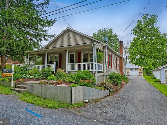 ***Back on the market due to buyer's financing.***Third bedroom is in the lower level*** 231 S Market Street is a beautiful home in the heart of Schaefferstown that combines modern interior design, classic architecture, spacious outdoor areas, updated appliances, and a prime location in a great neighborhood. This home sits on a quiet suburban neighborhood street and has been recently upgraded with modern appliances, systems, fixtures, and finishes. There are three steps and a concrete walkway that lead from the street to the expansive shaded front porch. Inside, the main living area features calming color schemes and hardwood floors. The open concept floor plan allows the front living room to flow seamlessly into the heart of the home. Directly off the living room is the first bedroom, a welcoming space with grey-tone walls, plush carpet, and large windows that allow for plenty of natural light. The living room flows directly into the dining area. This area features large windows that allow for plenty of natural light, hardwood floors and modern light fixtures. This space is big enough to fit a large dining room table, perfect for family meals and game nights.The newly renovated kitchen combines custom cabinets, a classic inspired brick backsplash, stainless steel appliances, a center island, and expansive counter space. This open and airy space has a window over the sink looking over the yard. Toward the rear of the home is a spacious laundry room that overlooks the backyard and built-in storage spaces. Shelves, hooks, cubbies, and easy-to-clean vinyl plank flooring make this a great place to keep your family organized. The master bedroom has a bold red accent wall, large windows, plush carpeting, and a private access to the bathroom. The bathroom is complete with an elegant pedestal sink, modern light fixtures, tile floors, and a tub/shower combo. The fully finished basement can serve as an additional living room, home gym, office, playroom, or craft studio. This spacious living space is carpeted, features electrical connections, exposed ceilings, neutral paint colors, and natural lighting. A sliding barn door keeps extra storage space hidden, and a cozy pellet stove sits up on a small concrete platform against an exposed brick wall. There is a third bedroom in the full basement as well. Outdoor living is a high priority here.The front porch is a shady place to enjoy coffee in the mornings and wave to the neighbors. Put a few rocking chairs on the front porch and you have a peaceful place to read, work, or relax. Out back, there is an expansive deck that overlooks a beautiful shaded garden. This back deck is the perfect place to have a family dinner or host a backyard BBQ. The garden is a beautiful shaded spot with a tranquil water feature, colorful natural flowers and fauna, a guided rock path, and mature trees. There is a detached garage toward the rear of the property. This space has room to park two cars and can serve as extra storage space or an additional workshop. This home is minutes from local grocery stores, restaurants, public and private schools, health and beauty shops, retail stores, and public parks and playgrounds. This gorgeous home was built in 1945 and has been a part of this quiet neighborhood for decades. The inside has been completely renovated to appeal to the modern family.