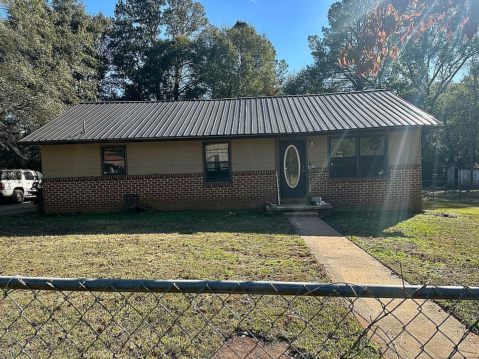 Newly updated with metal roof, HVAC, tankless hot water heater. Large kitchen with separate dining room. Living room and large den. Ceramic tile and hardwood throughout. Fenced in yard. Still working on touch ups since last renters moved out.